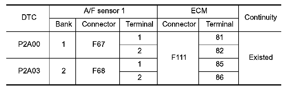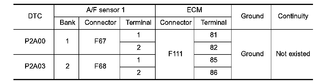 P2A00, P2A03 A/F SENSOR 1