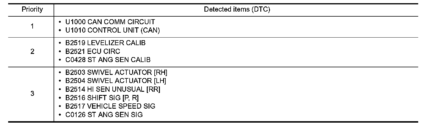If some DTCs are displayed at the same time, perform inspections one by one based on the following priority chart.