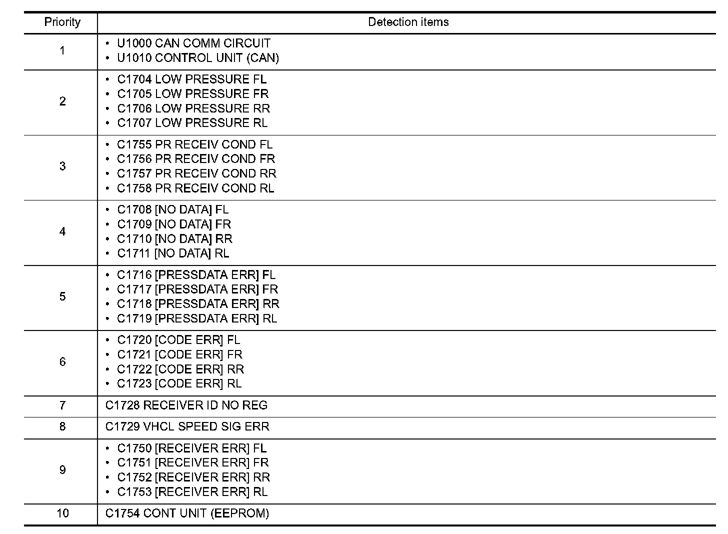 When multiple DTCs are detected simultaneously, check one by one as per on the following priority list.