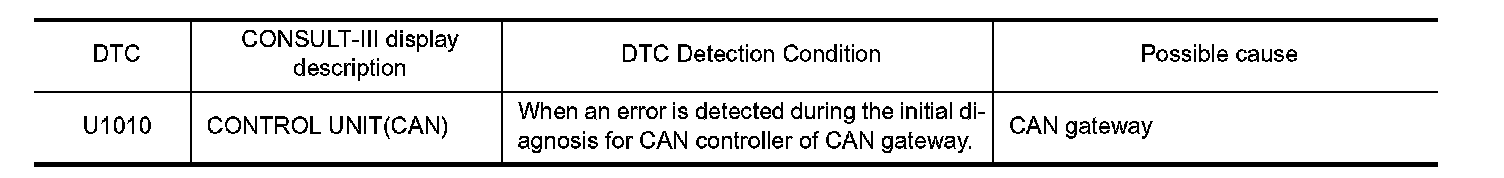 When DTC "U1010: CONTROL UNIT(CAN)" is detected, replace CAN gateway.