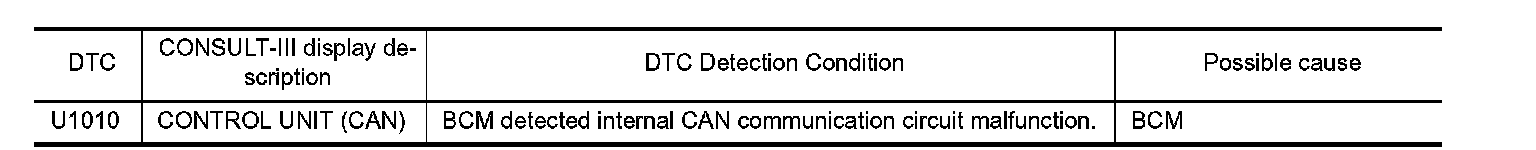 When DTC "U1010" is detected, replace BCM.