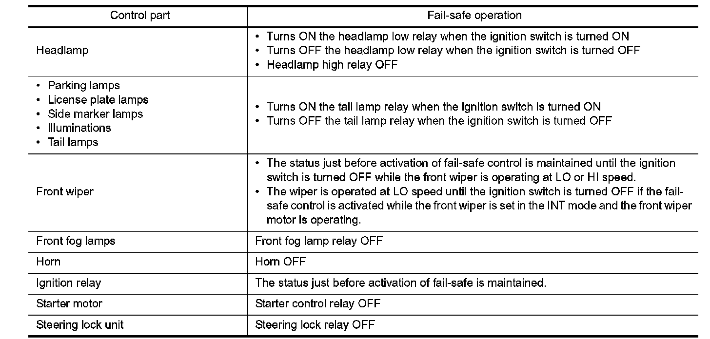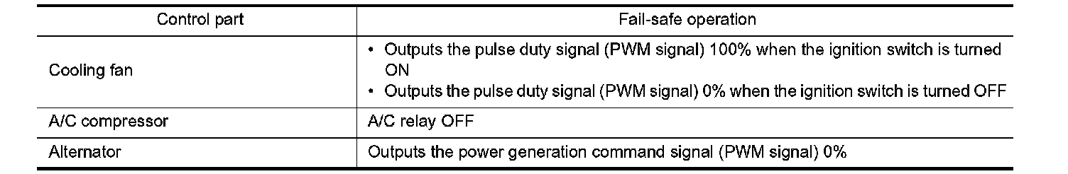When CAN communication with ECM and BCM is impossible, IPDM E/R performs fail-safe control. After CAN communication recovers normally, it also returns to normal control.