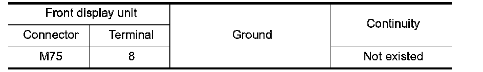 4. Check continuity between front display unit harness connector and ground.