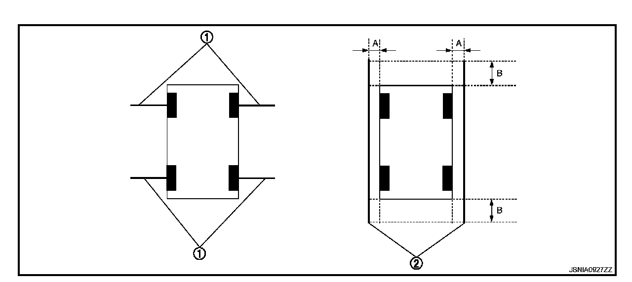 (right and left) at approximately 30 cm (11.8 in) away from the vehicle (make the line as parallel with the vehicle as possible).
