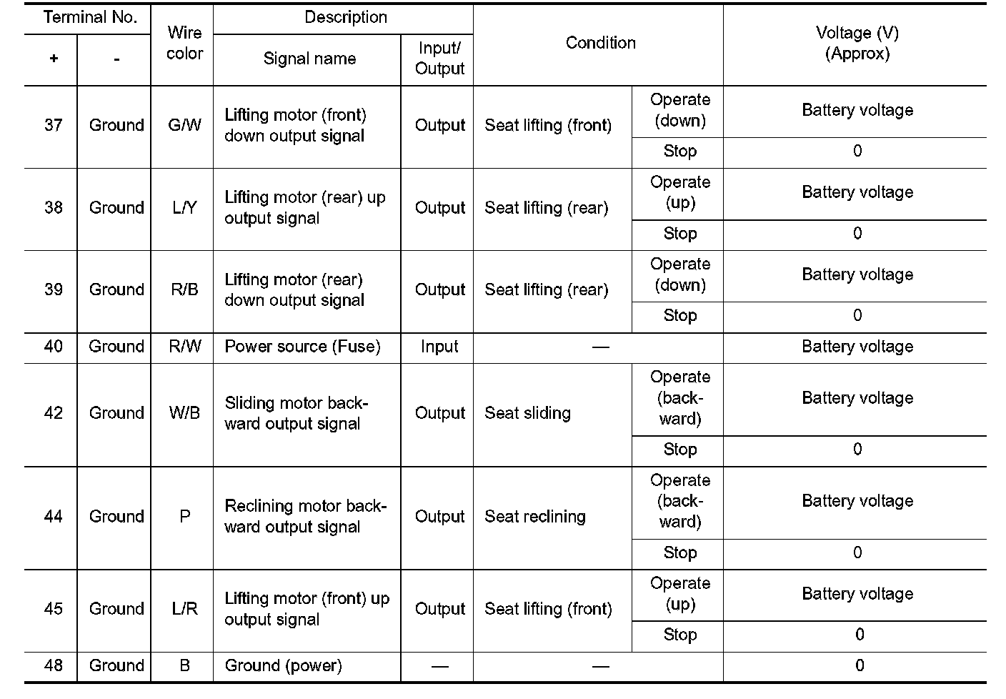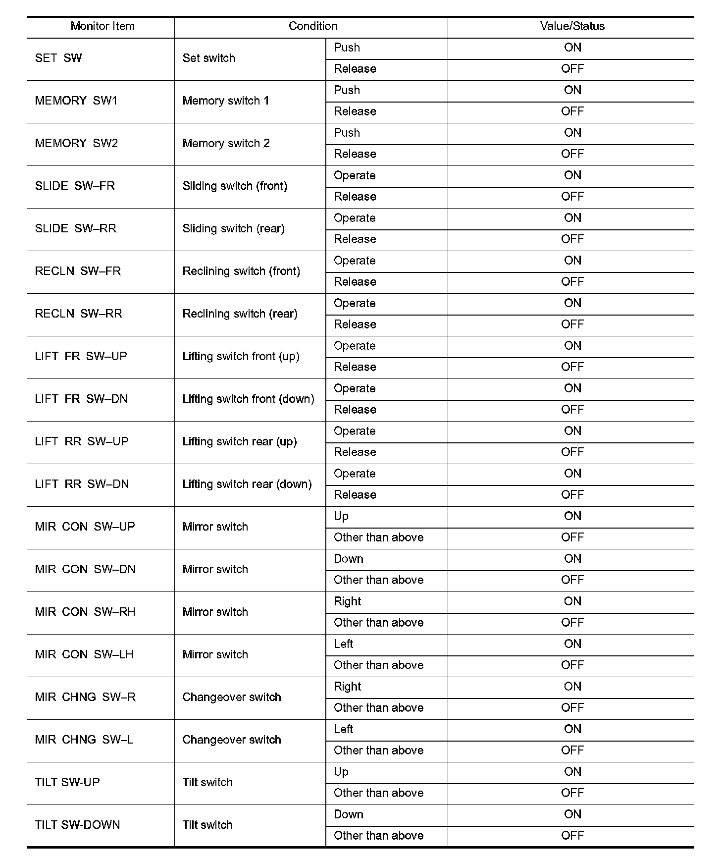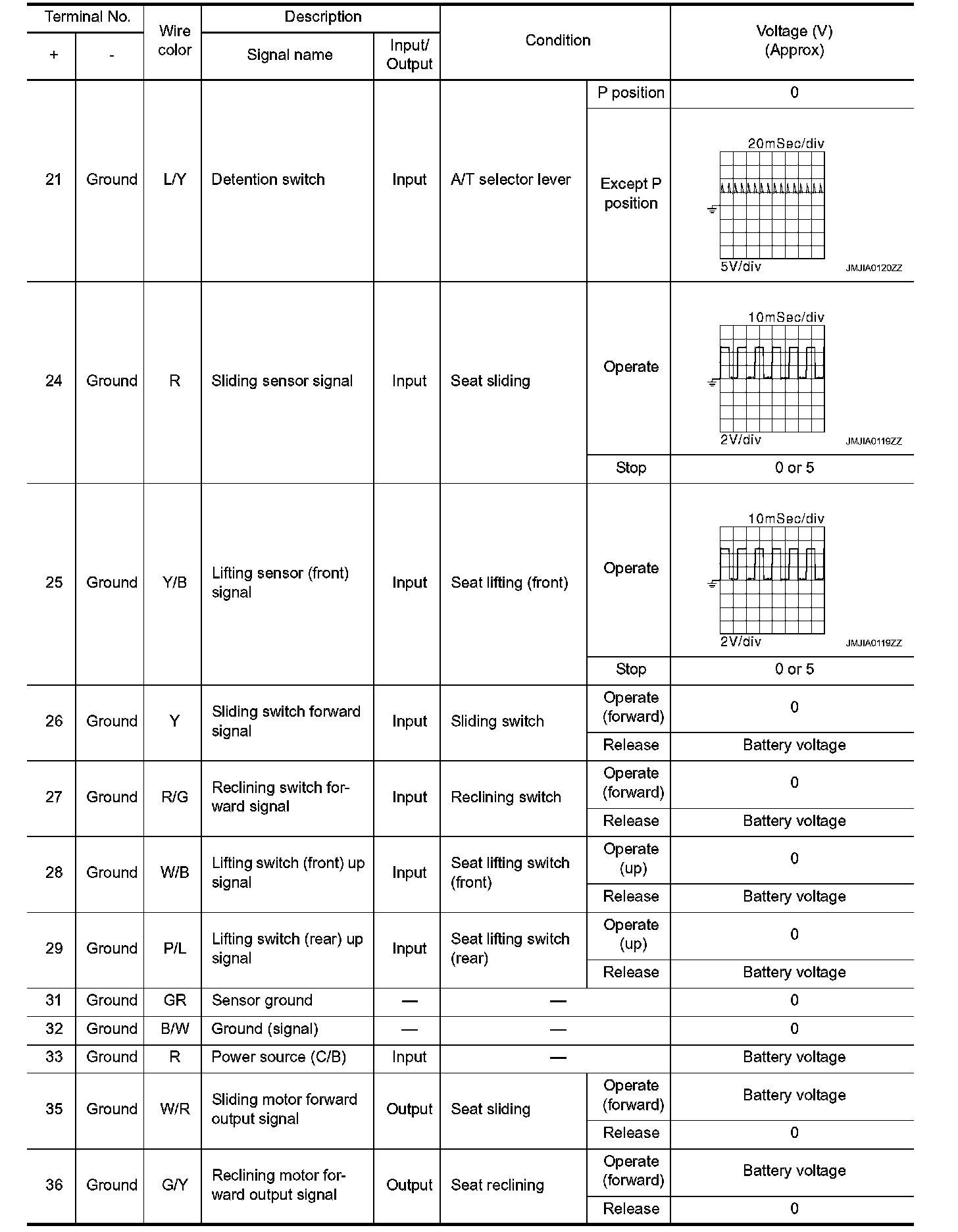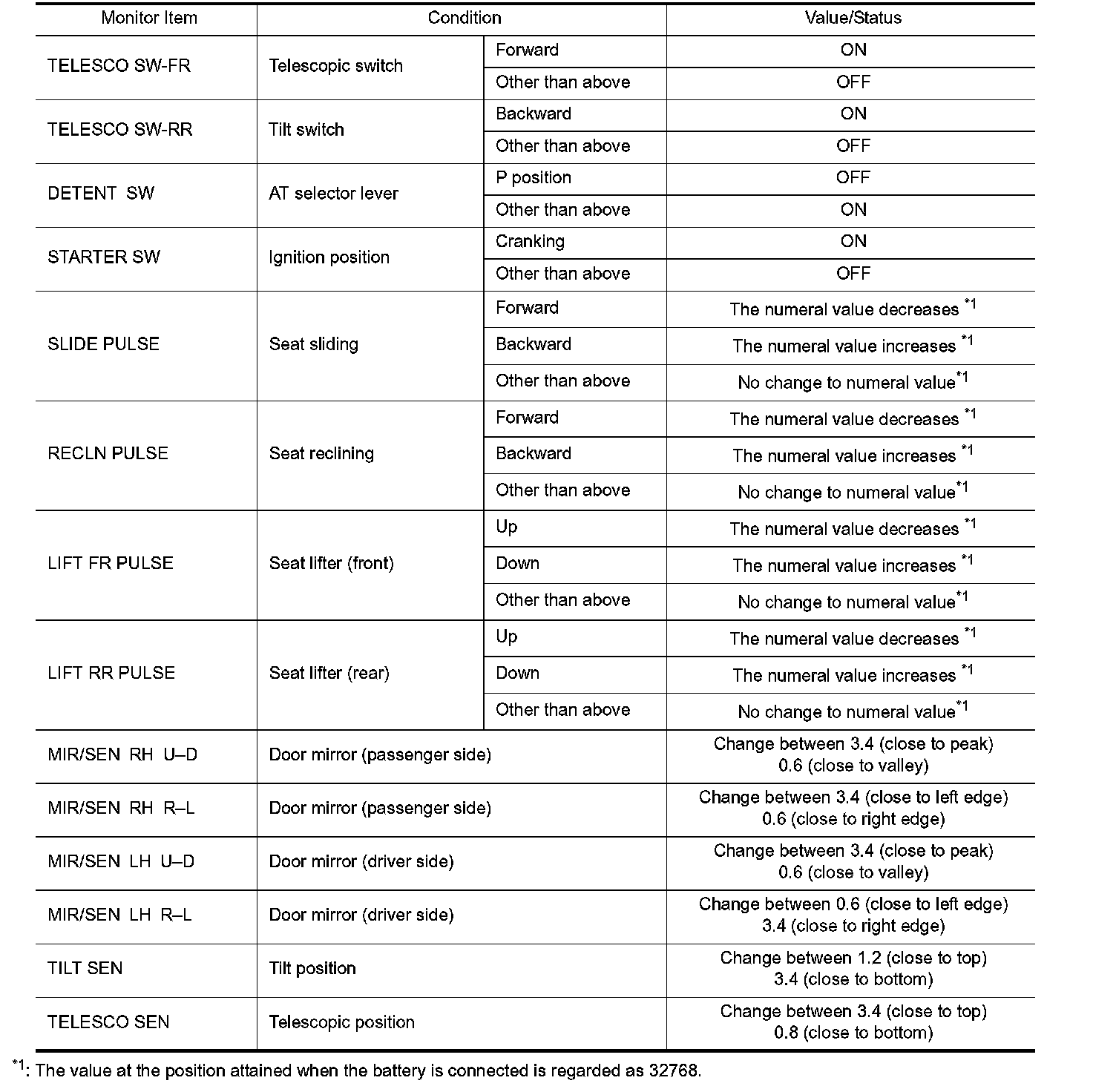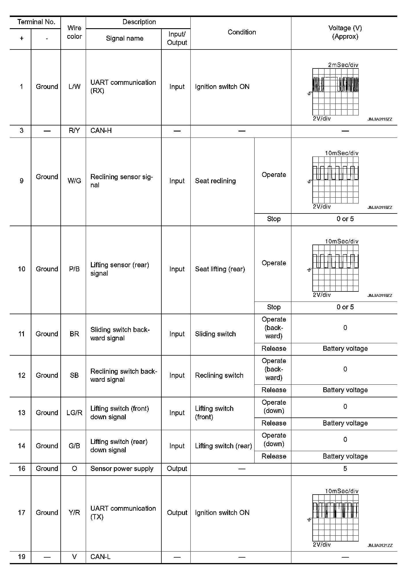 Pinout Values and Diagnostic Parameters
