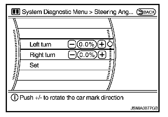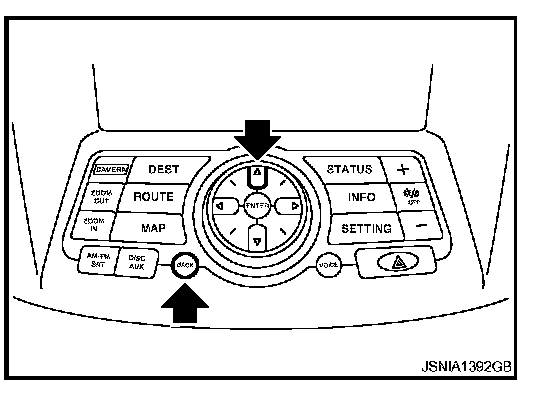 - Press the "BACK" switch and the "UP" switch of the 8-direction switches within 10 seconds after turning the ignition switch from