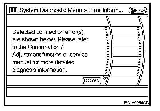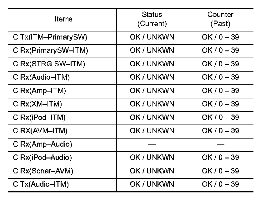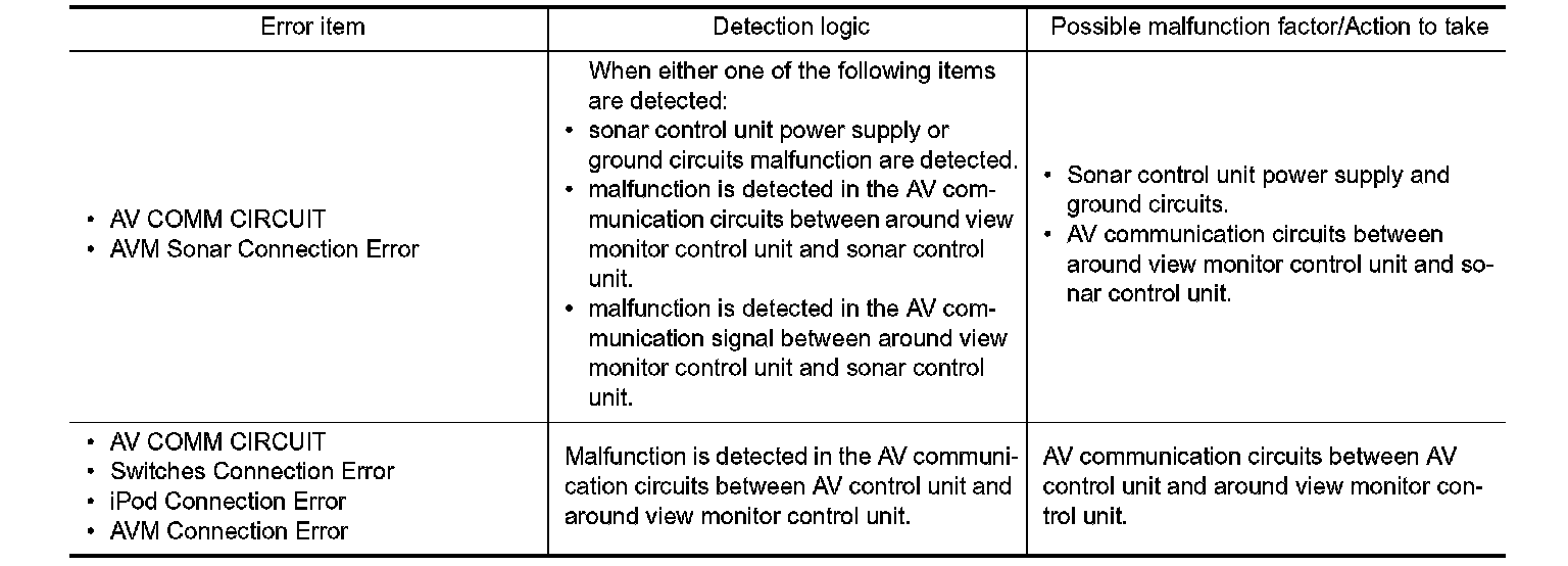 - Because the start condition of diagnosis function is switch operated, the on board diagnosis function cannot be started up if any malfunction is detected in the communication circuit between AV control unit and multifunction switch.