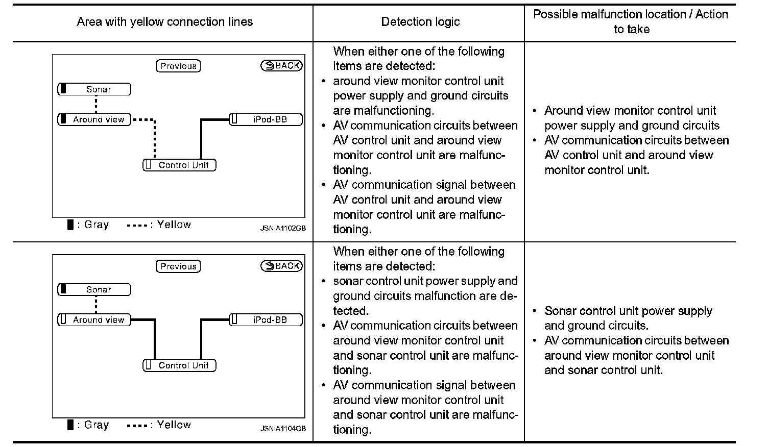 - The self-diagnosis mode allows the technician to diagnose the connection in the communication line between AV control unit and each unit and the internal operation of AV control unit.