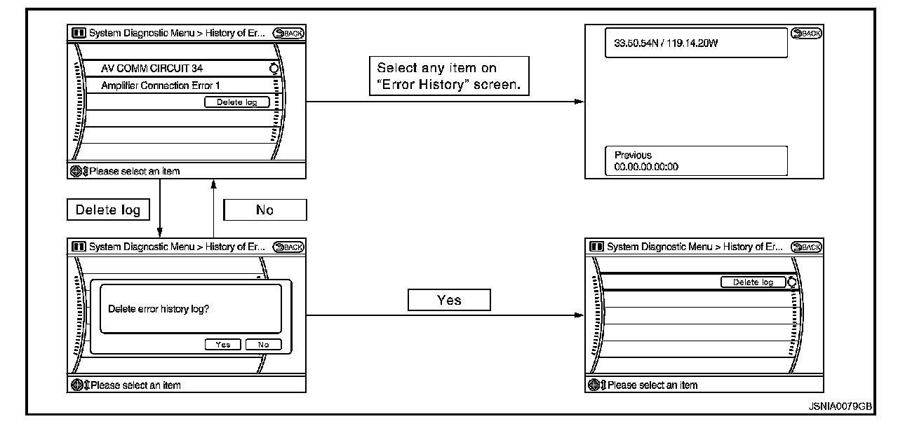 - If there is a malfunction with the GPS antenna circuit board in AV control unit, the correct date and time of occurrence may not be displayed.
