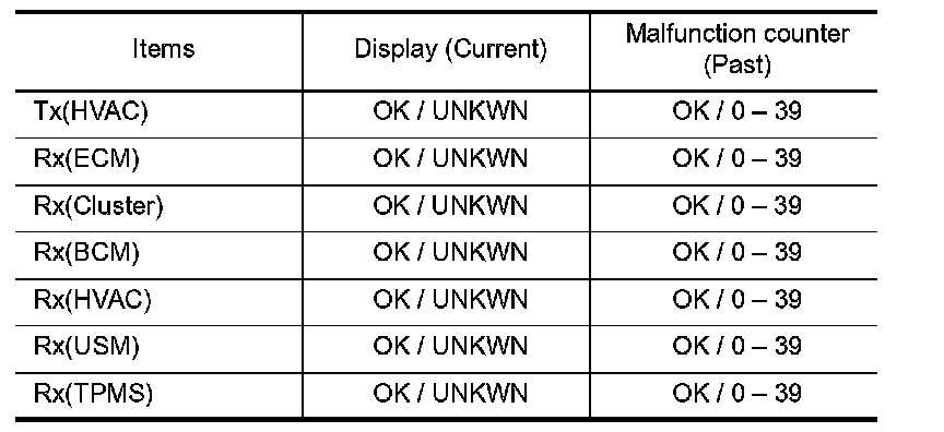- The error counter displays "OK" if any malfunction was not detected in the past and displays "0" if a malfunction is detected. It increases by 1 if the condition is normal at the next ignition switch