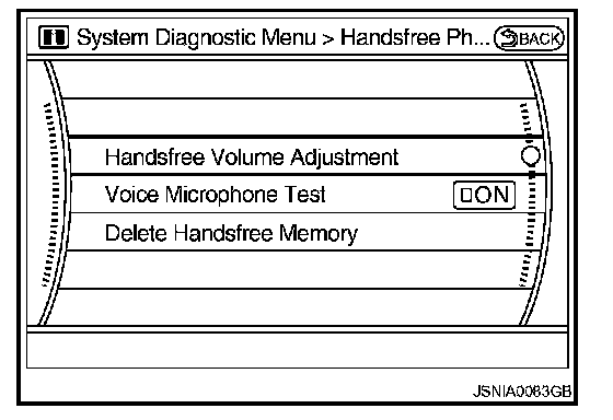 The hands-free phone reception volume adjustment, microphone and speaker test, and memory erase functions are also available.