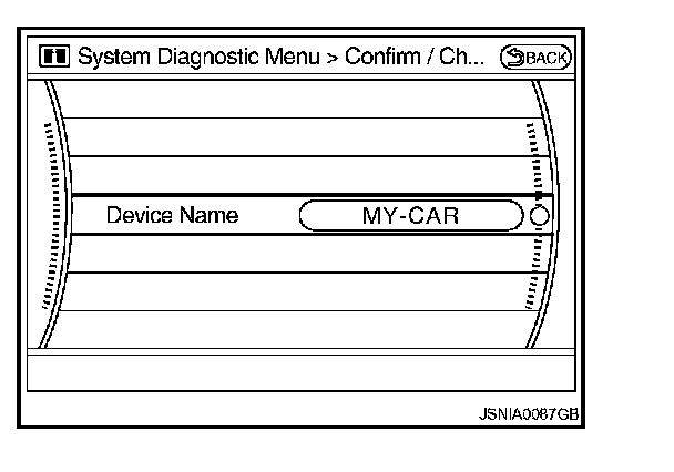 2. Select each switch on the "Confirmation/Adjustment Mode" screen to display the relevant trouble diagnosis screen. Press the "BACK" switch to return to the initial Confirmation/Adjustment Mode screen.
