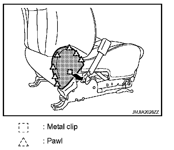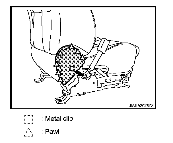 Remove the metal clip and pawls, and then pull out seat cushion inner finisher.