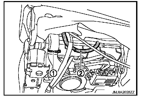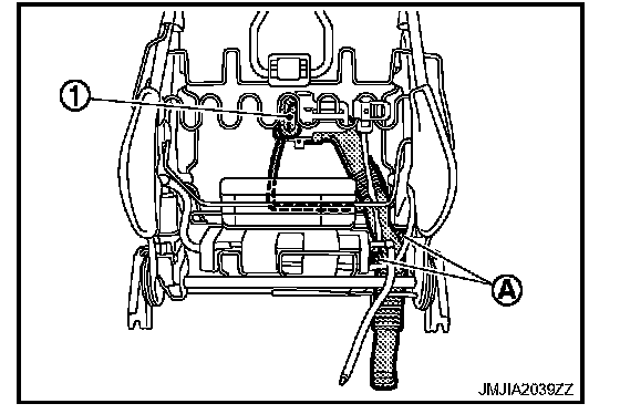 - Cut the seatback duct band (1) of seat cushion under side.