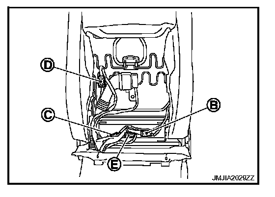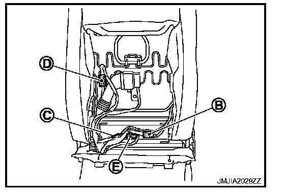 - Disconnect the seatback thermal electric device (TED) harness connector (E).