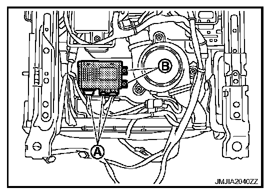 - Remove the climate controlled seat control unit mounting screws (B).