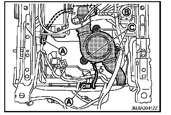 - Remove the climate controlled seat blower motor mounting screws (C).