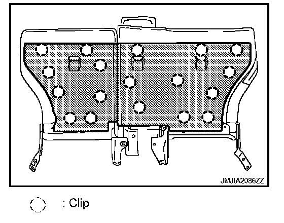 - Install the hog rings of seatback trim in position, and then securely connect the trim or trim cord with the seatback frame.