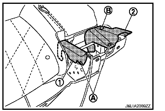Remove the screws (A) and clip (B), and then reclining device inner cover (1) and reclining device inner cover inside (2).