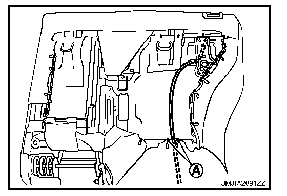 - Remove the hog rings (A) and cable clamp.