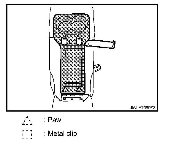 - Remove the metal clips and pawl, and then pull out armrest bracket cover.