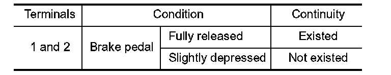 2. Check the continuity between ASCD brake switch terminals under the following conditions.