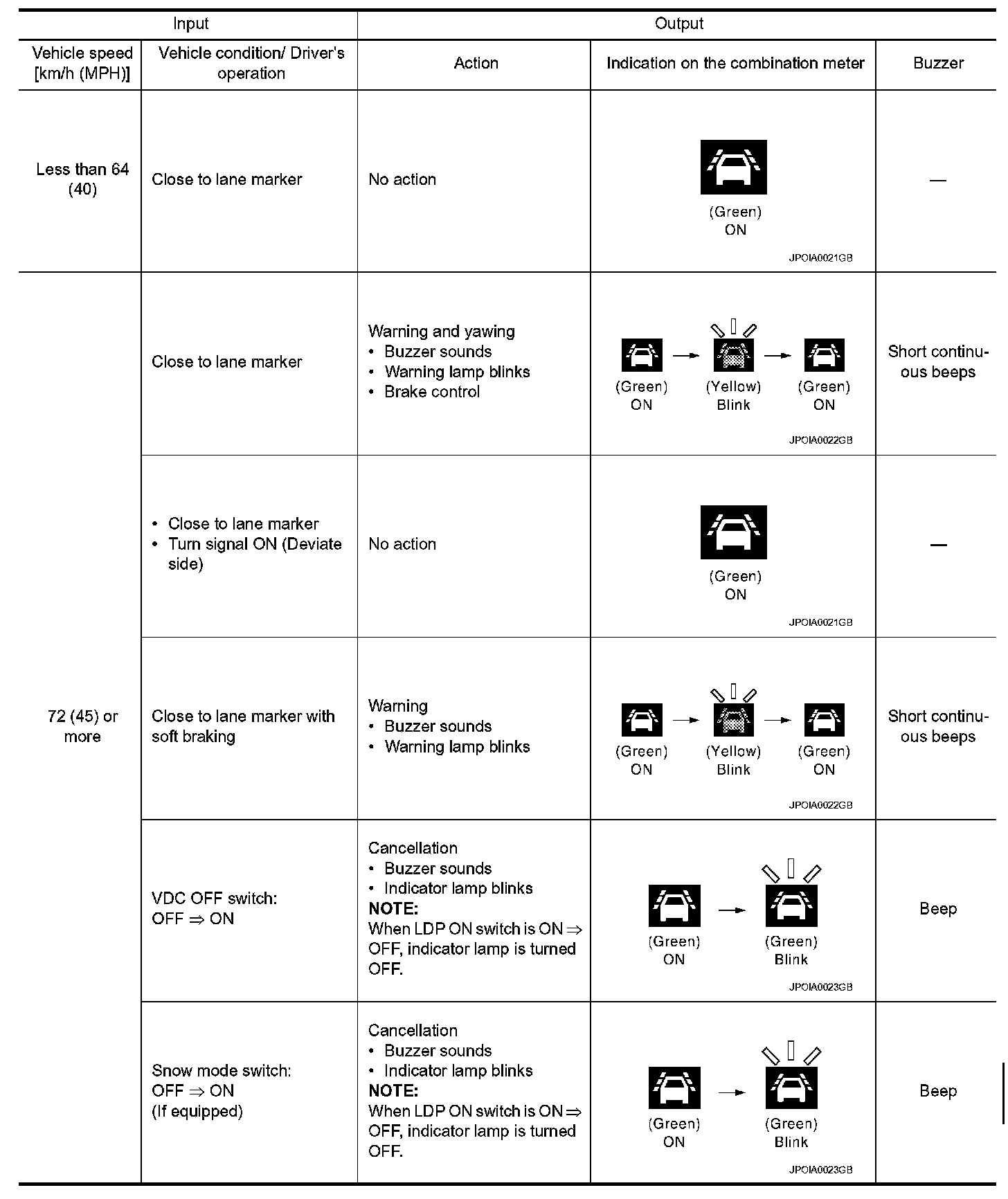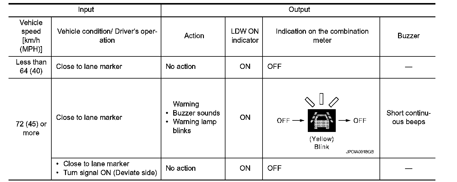 - Normal operating condition: Refer to LDW and LDP.