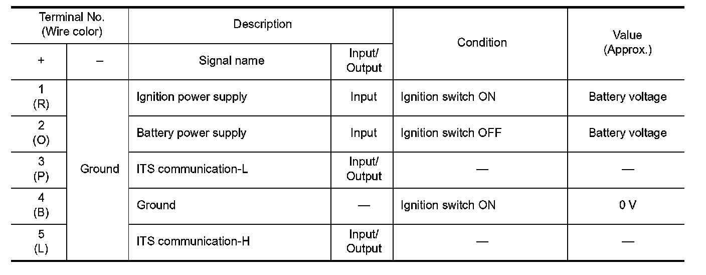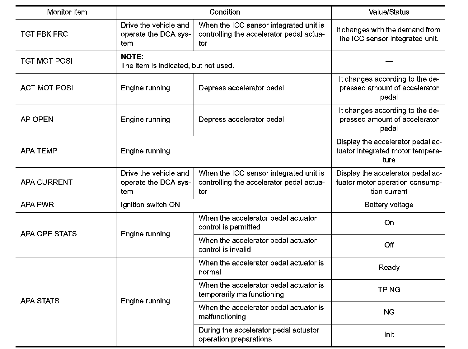 Pinout Values and Diagnostic Parameters