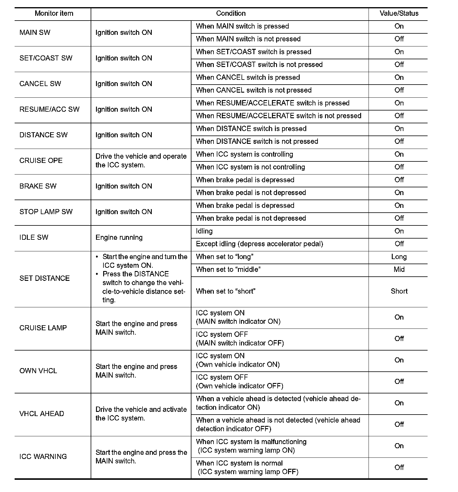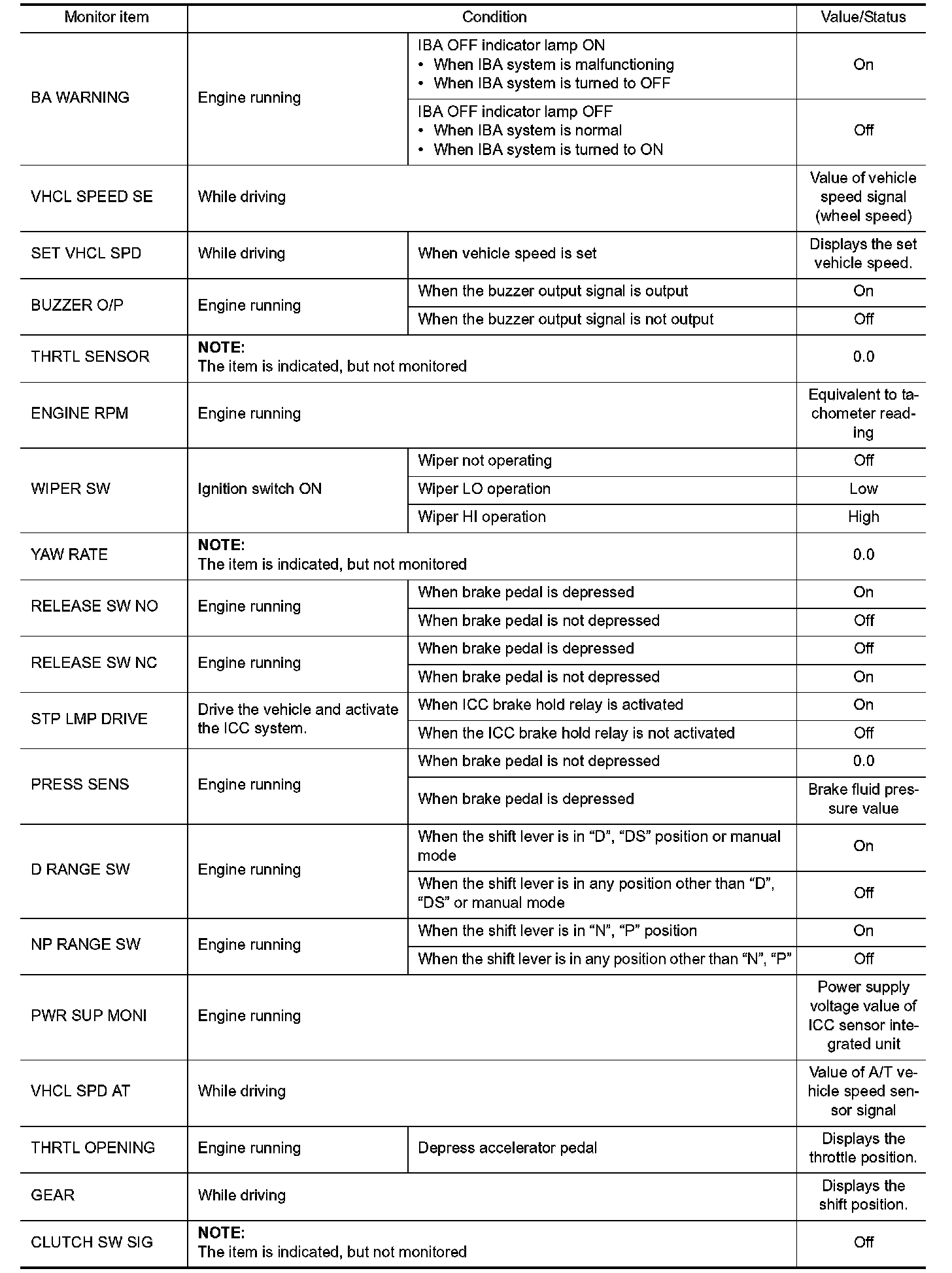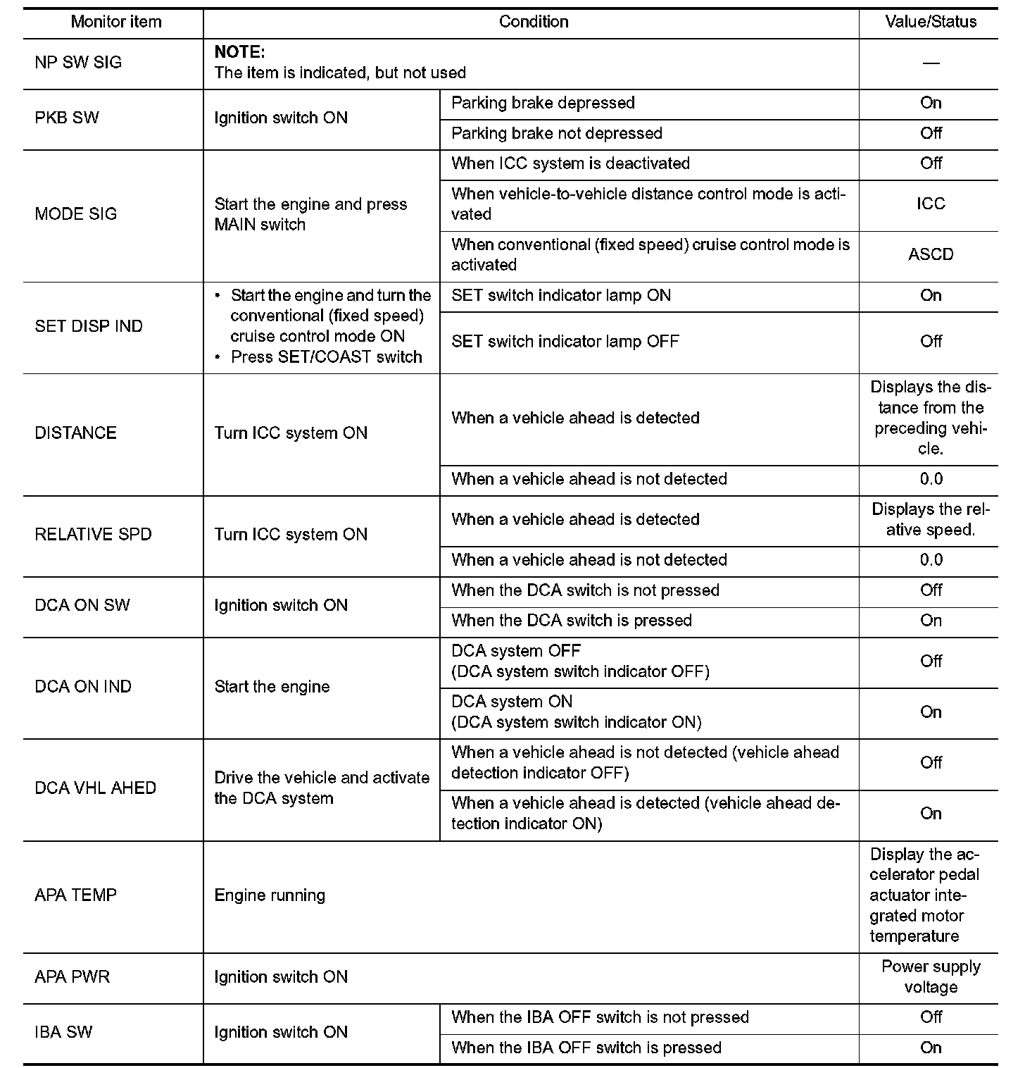 Pinout Values and Diagnostic Parameters