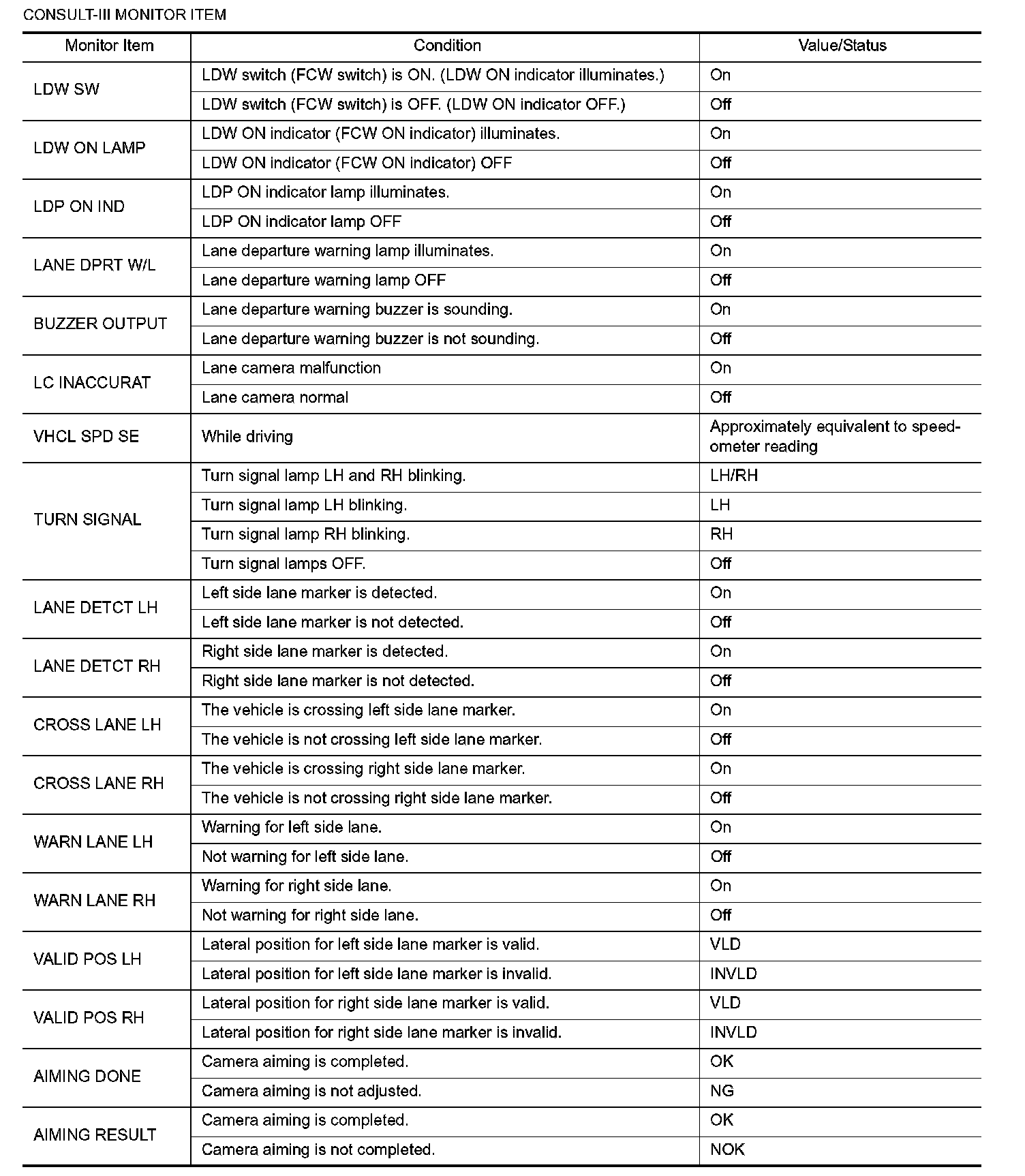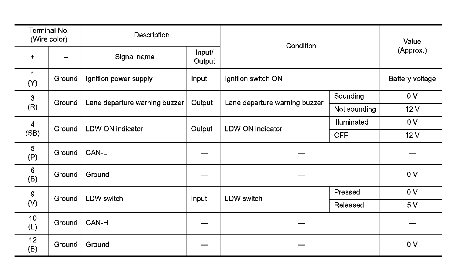 Pinout Values and Diagnostic Parameters