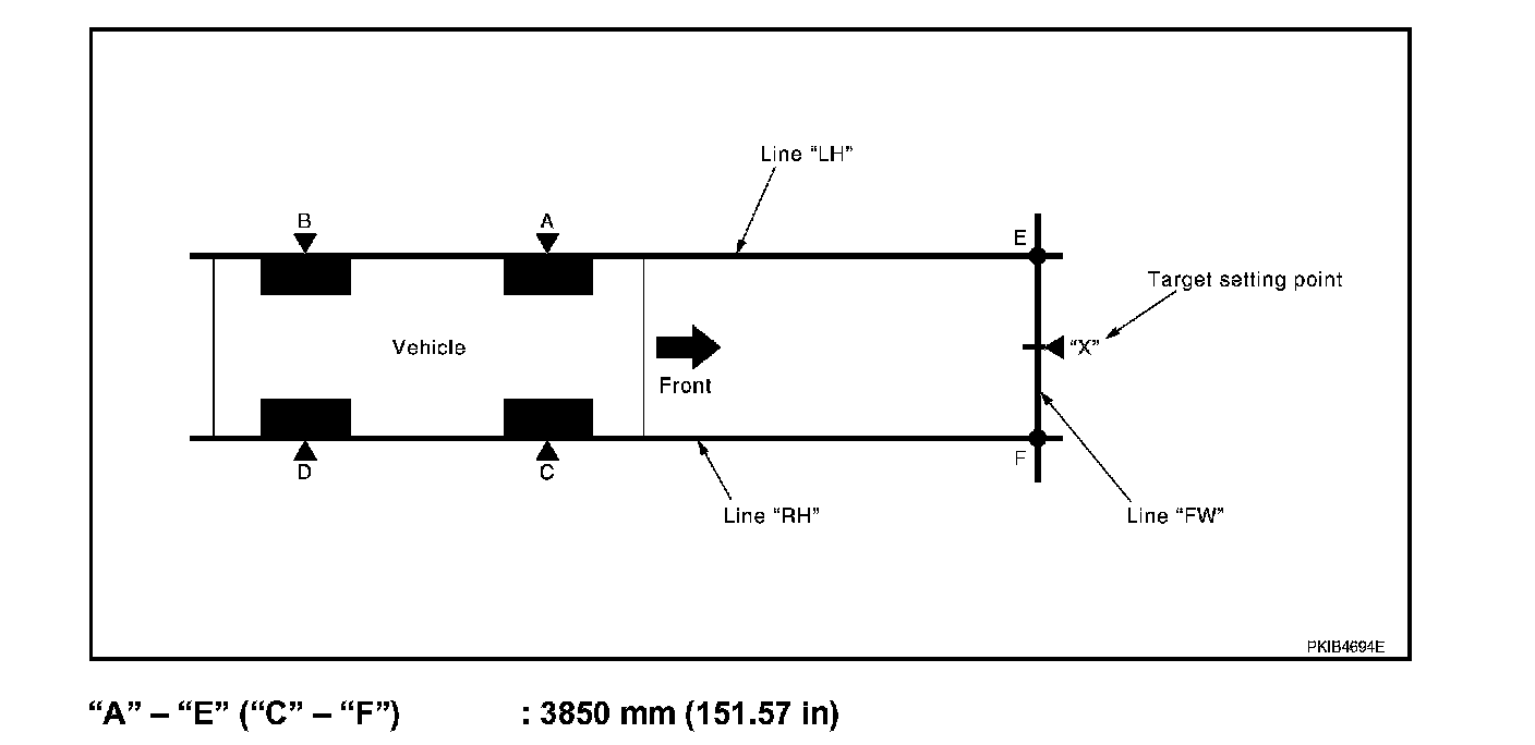 6. Draw line "FW" passing through the points "E" and "F" on the front side of vehicle.
