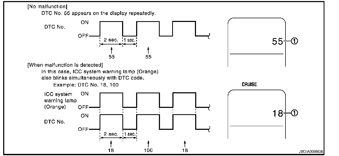 The DTC is displayed on the information display by operating the ICC steering switch.