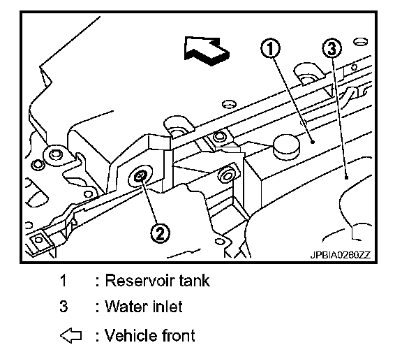 6. Fill water inlet, and reservoir tank if removed, to specified level.
