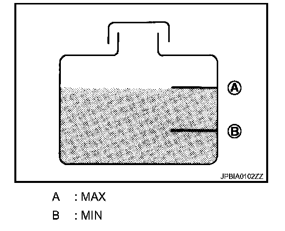 Reservoir tank engine coolant capacity (At "MAX" level): Refer to CO-49, "Periodical Maintenance Specification". Maintenance