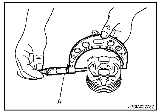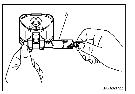 Measure the outer diameter of piston skirt with a micrometer (A).