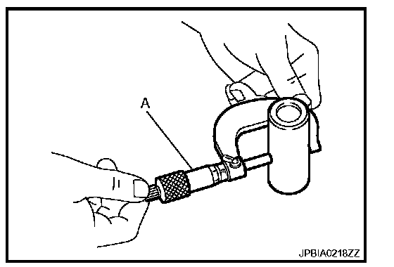 Measure the outer diameter of piston pin with a micrometer (A).