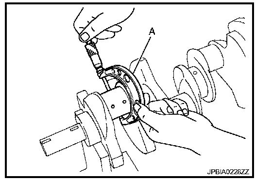 - Measure the outer diameter of crankshaft pin journal with a micrometer (A).