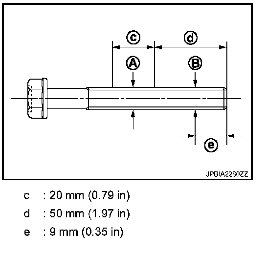 - If it exceeds the limit (large difference in dimensions), replace main bearing cap sub bolts with new one.
