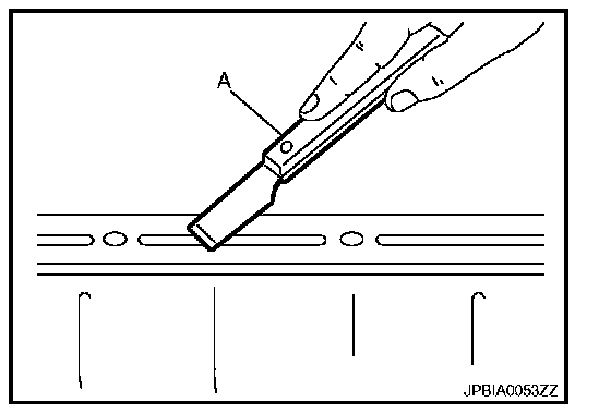 1. Using a scraper (A), remove old liquid gasket adhering to the liquid gasket application surface and the mating surface.