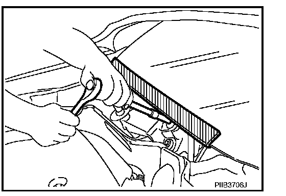 When performing the procedure after removing cowl top cover, cover the lower end of windshield with urethane, etc.