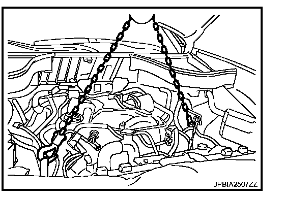 (i.e. hoisting the front and rear slingers from one point in the air), or the rocker cover and parts around the engine may be damaged due to the fall of the engine slinger.
