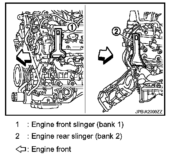 1. Install engine slingers into front of cylinder head (bank 1) and rear of cylinder head (bank 2).