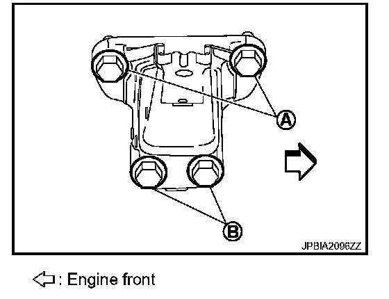 - When installing engine mounting bracket (RH and LH) on cylinder block, tighten two upper bolts (A) first. Then tighten two lower bolts