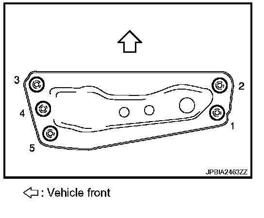- Tighten rear engine mounting member bolts in numerical order as shown in the figure.