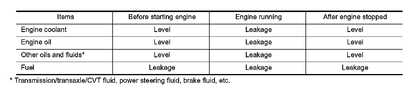 The following are procedures for checking fluid leakage, lubricant leakage.