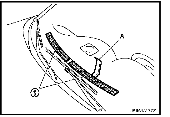 Remove front defroster grilles (1), using remover tools (A).