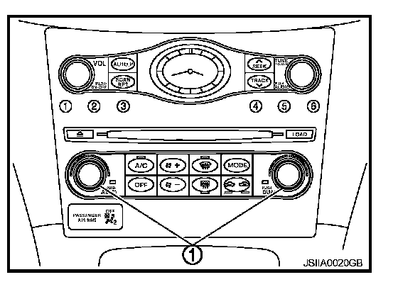 The PTC (1) is built into the preset switch. It can be set at an interval of 0.5�C (1.0�F) in the 18.0�C (60�F) to 32.0�C (90�F) temperature range by turning temperature control dial. The set temperature is displayed.