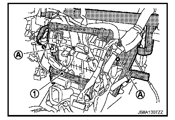 9. Remove clamps (A), and then disconnect heater hoses (1).
