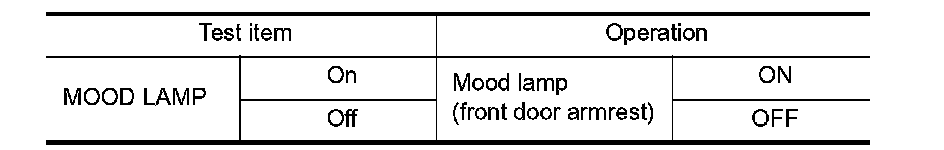3. While operating the test items, check mood lamp (front door armrest) operation.