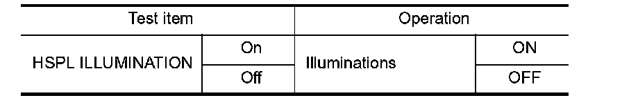 3. While operating the test items, check the illuminations operation.